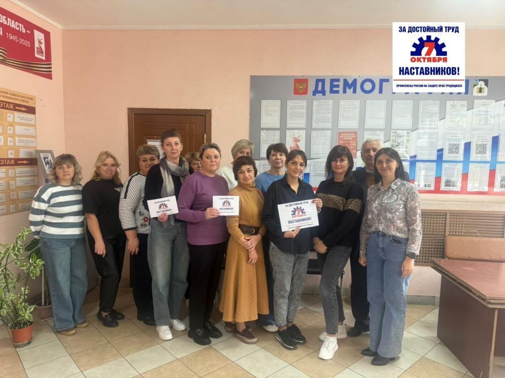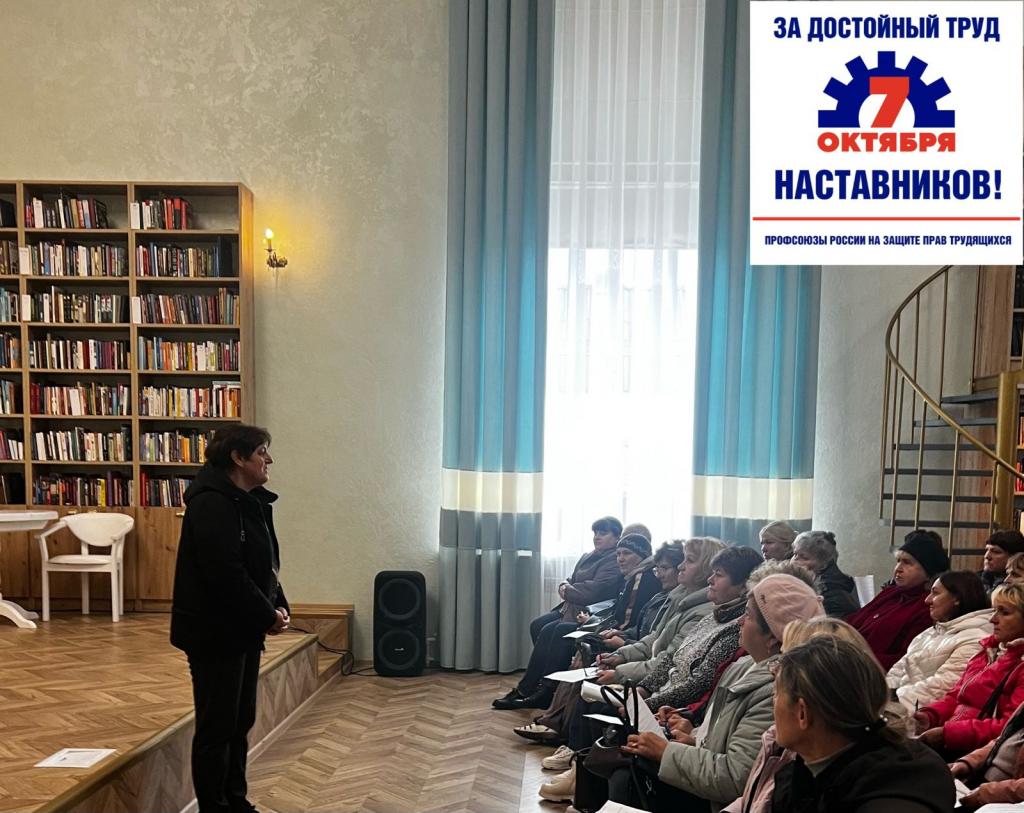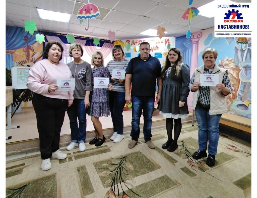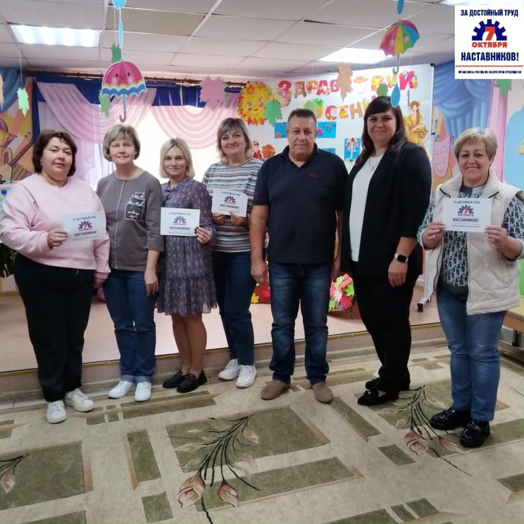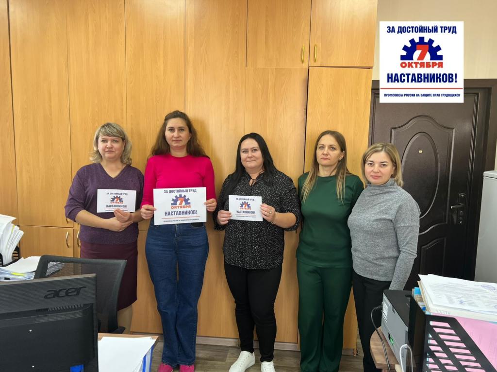 В рамках Всероссийской акции «За достойный труд наставников!» 3 октября было проведено собрание с трудовыми коллективами (42 чел.) с обсуждением защиты прав и интересов работников-наставников, создание условий для достойной оплаты и признания труда наставников в учреждениях и профессиональных интересов членов первичной профсоюзной организации учреждения.